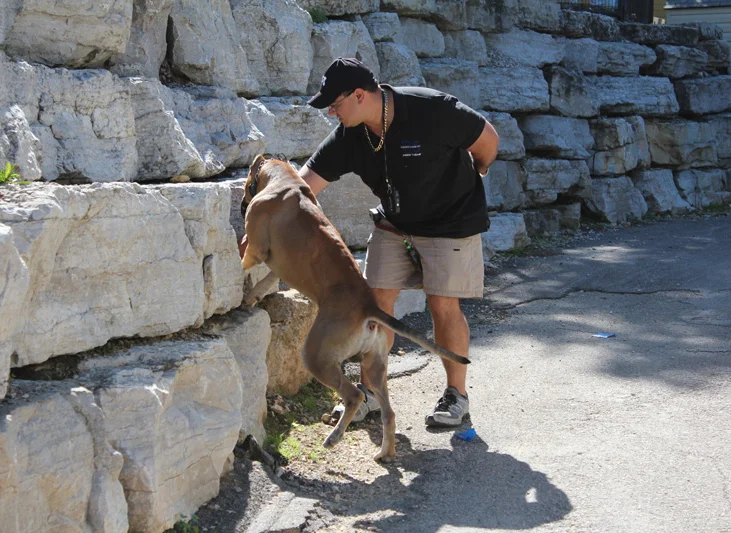 We we require that each professional student teach one of their dogs how to find and indicate on two different narcotic odors. We test them by having their dog find five finds in five minutes on a rock wall located at the TRS training center.